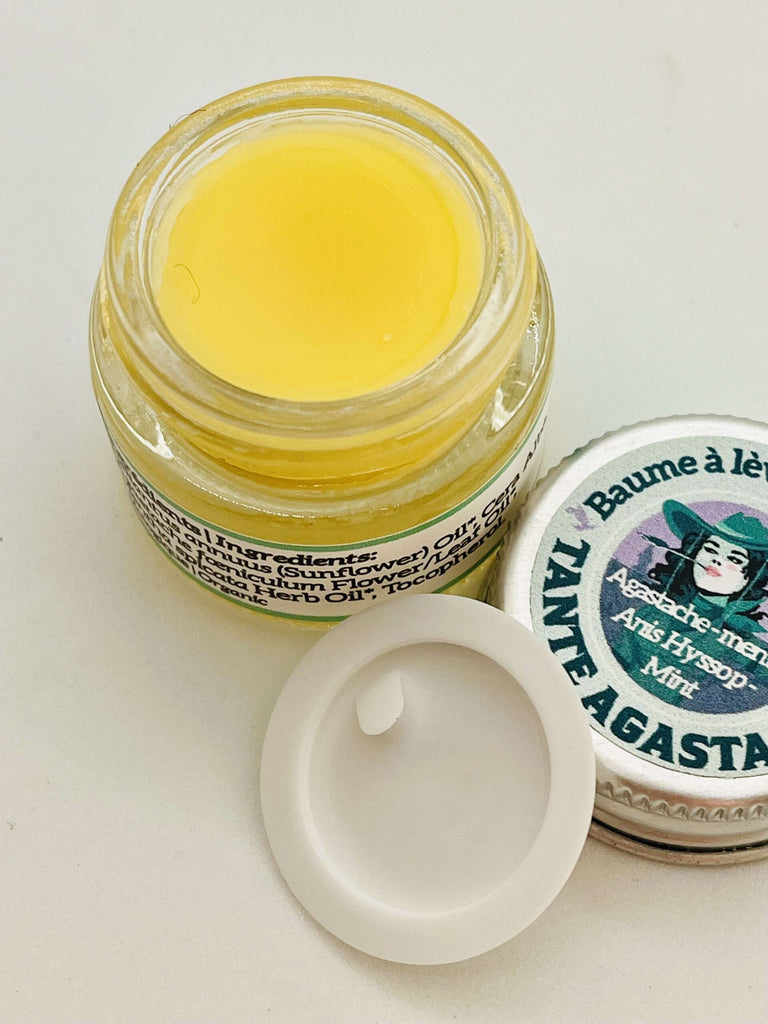 INCI: Heliantus annuus (Sunflower) Oil*, Cera alba, Agastache fœniculum Flower/Leaf Oil*, Mentha spicata Herb Oil*, Tocopherol.