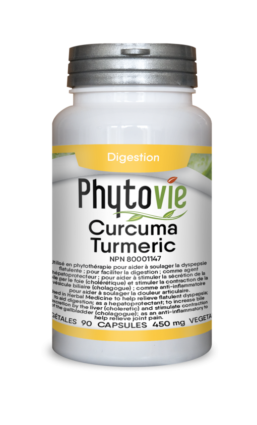 Chaque capsule contient 450mg rhizome séché en poudre de Curcuma longa L. (Curcuma).