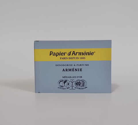 Le Papier d'Arménie est le plus ancien parfum d'intérieur. Des senteurs aux notes sucrées, vanillées et balsamiques rappelant les senteurs de l'Orient. L'odeur unique du petit papier provient de la résine de Benjoin dont les vertus désinfectantes ont été découvertes par Auguste Ponsot en 1885, lors d'un voyage den Arménie. Il décide d'en importer ses bienfaits en Frane. Le benjoin servait autrefois, en usage externe, à traiter l'asthme, la toux et les rhumes, il est encore utilisé actuellement comme cicatrisant. Il parfume votre intérieur et enlève toute mauvaise odeur de cuisine, tabac, d'animaux, etc.