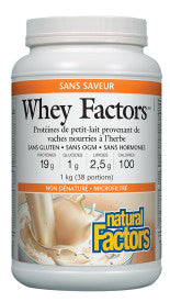 Whey Factors de Natural Factors est une boisson protéinée en poudre à faible teneur en glucides et de grande qualité. Un atout essentiel pour les personnes physiquement actives en raison de sa grande valeur biologique et de sa forte teneur en acides aminés ramifiés. Les recherches ont démontré que la protéine de petit-lait est aussi bénéfique pour les enfants, les personnes âgées ou encore ceux et celles qui préviennent de troubles immunitaires.